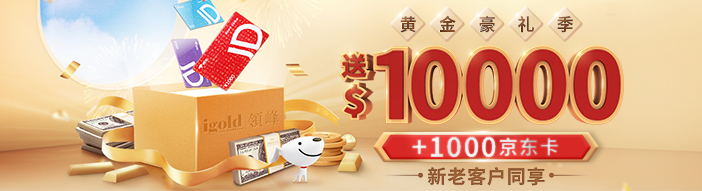 黄金振荡不定,入场时机频频显现!为此,领峰特送出每人最高10,000美元赠金好礼,以及价值高达1,000元京东卡,让您先领赠金后交易!
