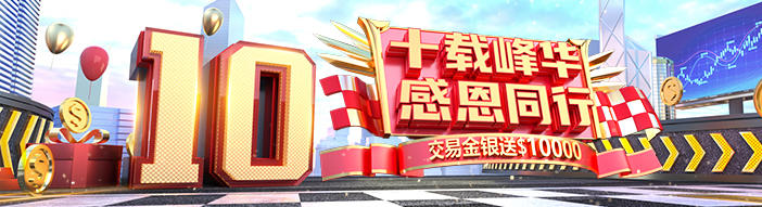 十年金融革新,领军华夏市场!值此10周年庆典,领峰特送出$10000赠金,助您的盈利再创高峰!