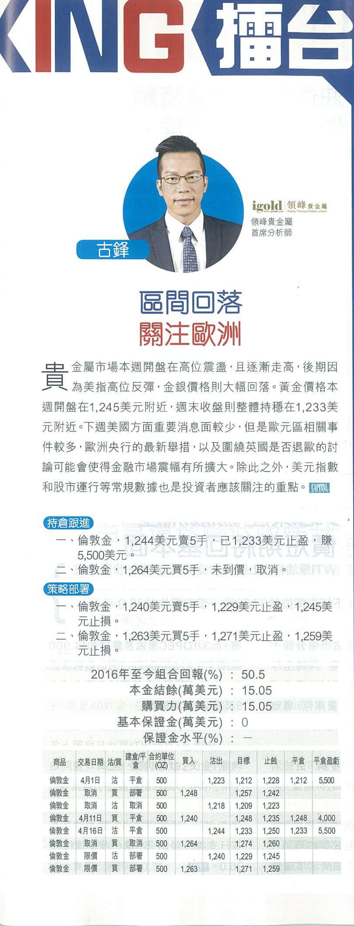 一、伦敦金,1244美元卖5手,已1233美元止盈,赚5500美元。