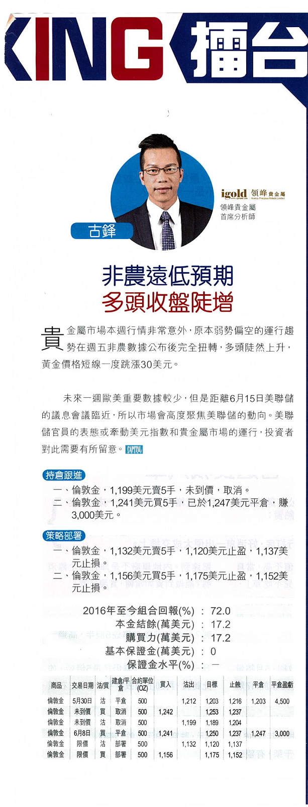二、伦敦金,1241美元买5手,已于1247美元平仓,赚3000美元。