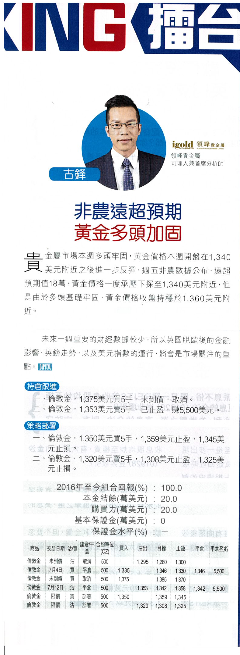 一、伦敦金,1350美元买5手,1359美元止盈,1345美元止损。