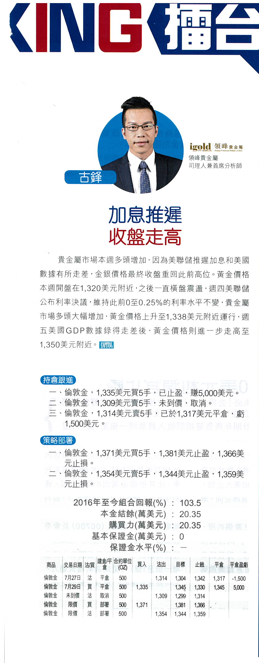 一、伦敦金,1335买5手,已止盈,赚5000美元。