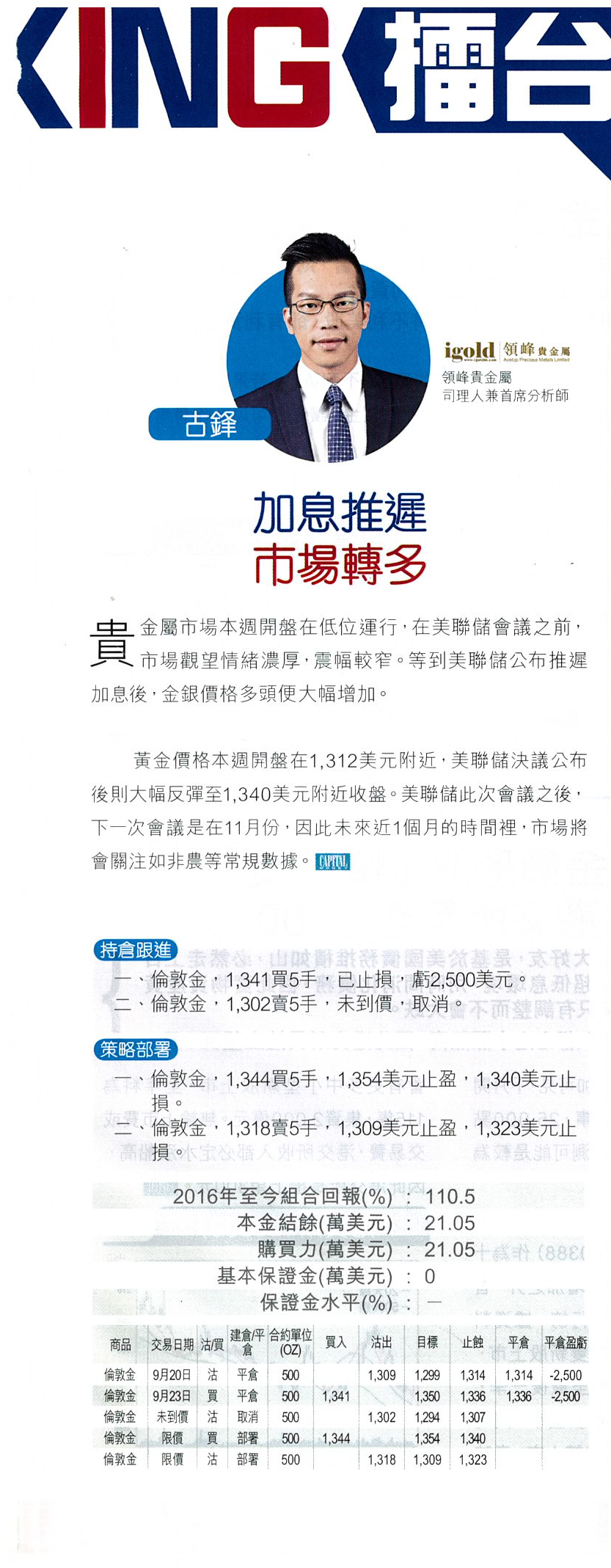 二、伦敦金,1302卖5手,未到价,取消。