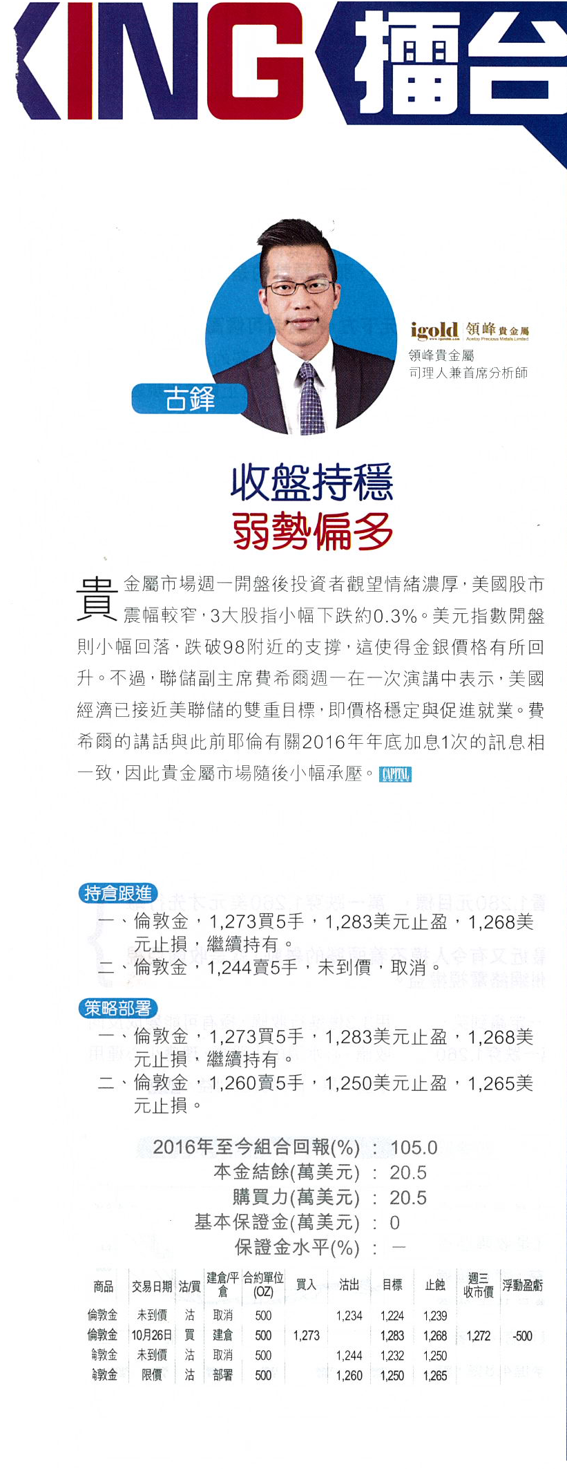一、伦敦金,1273买5手,1283美元止盈,1268美元止损, 继续持有。