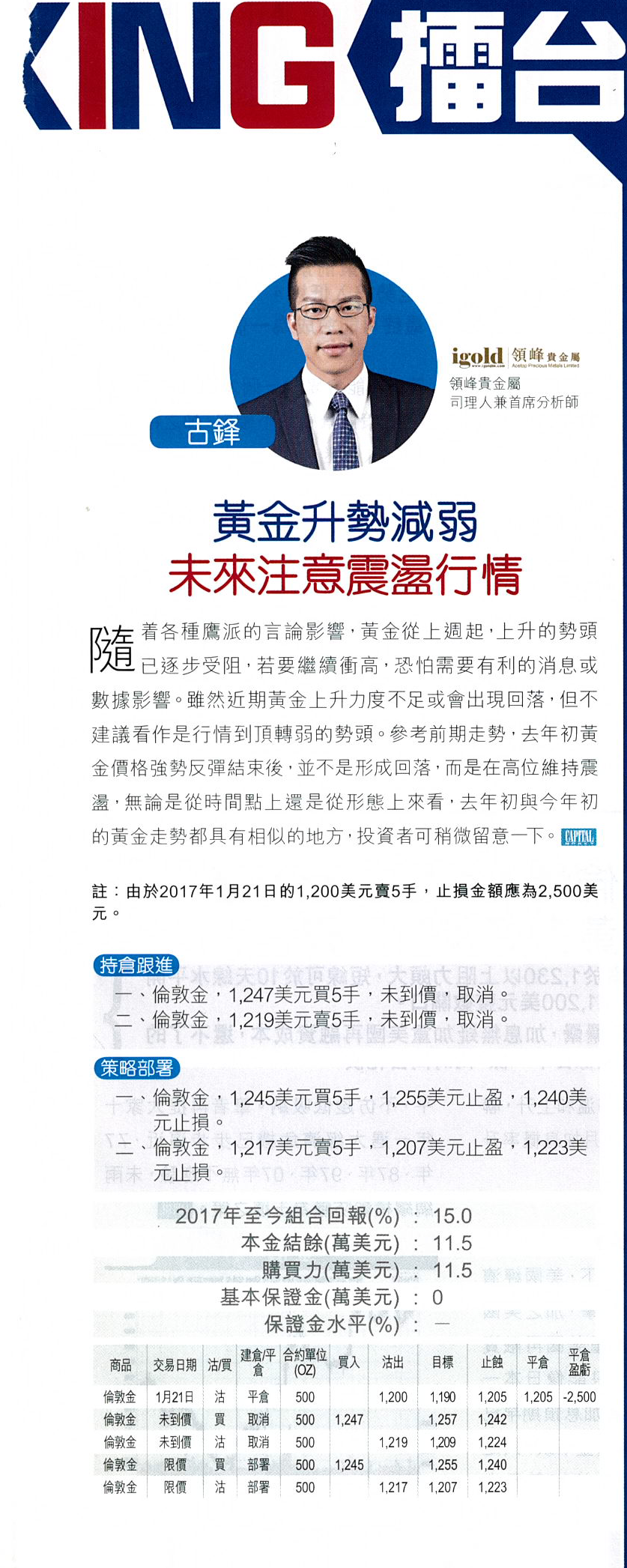 注* 2017年1月21日的持仓跟进中,1200美元卖5手,止损金额应为2500美元。