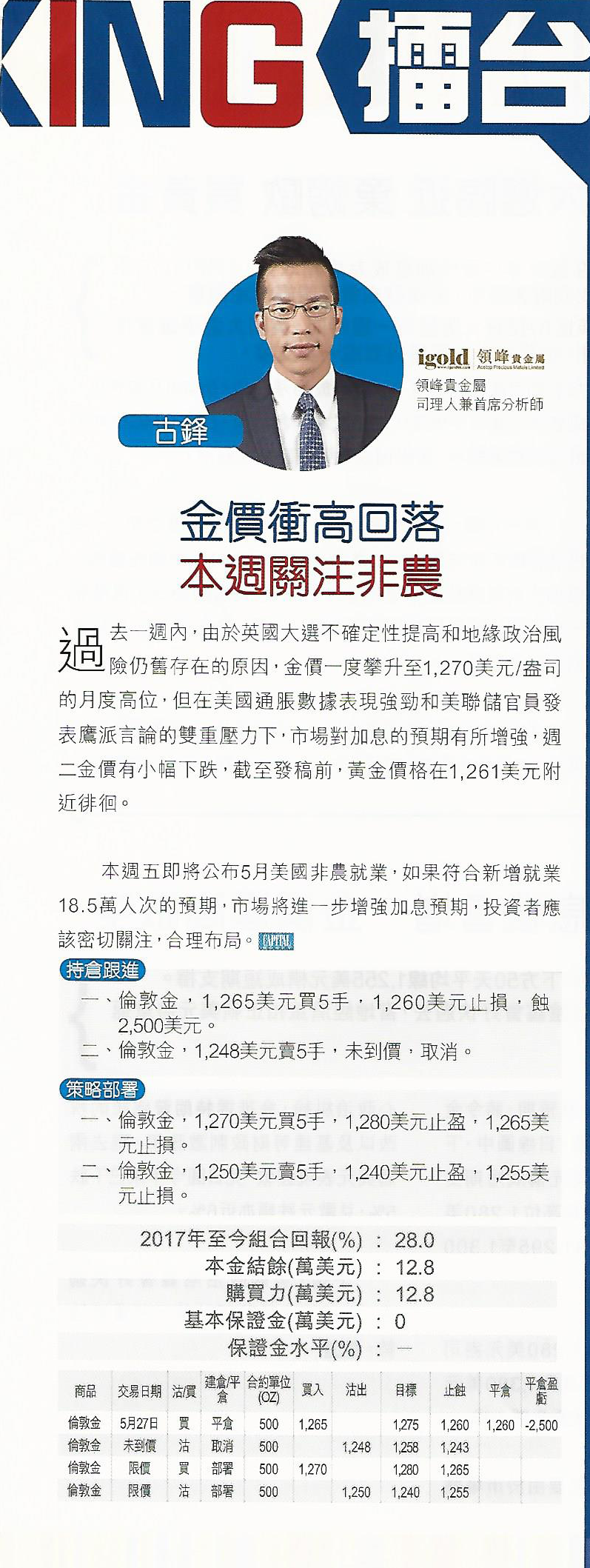 一、伦敦金,1265美元买5手,1260美元止损,蚀2500美元。