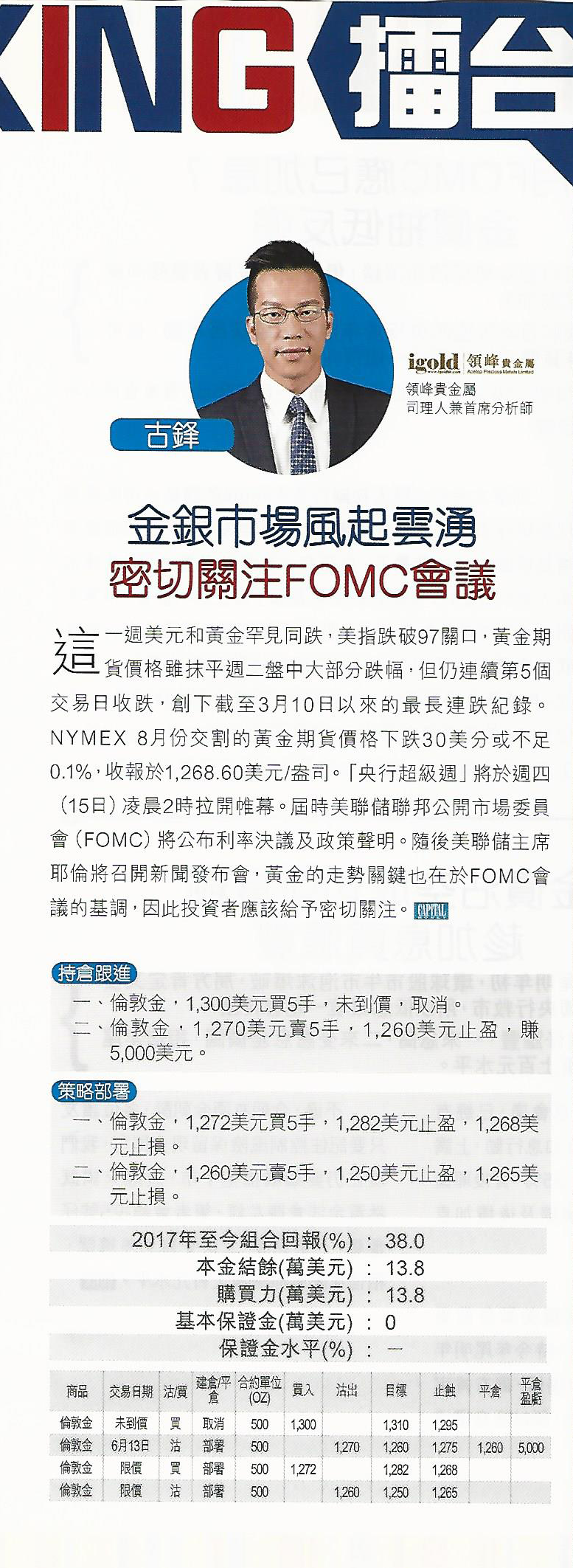 一、伦敦金,1272美元买5手,1282美元止盈,1268美元止损。