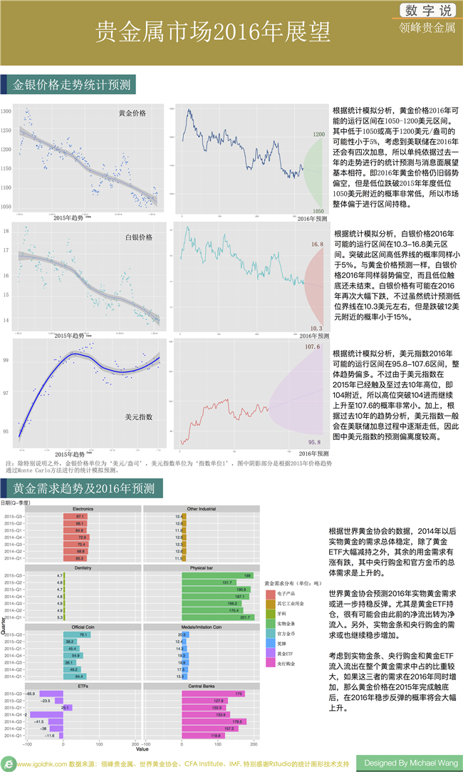 在上篇的专题对2015年的回顾中,我们特别强调了贵金属市场分析中消息面分析的重要性。因此在进一步研判上图给出的统计模拟预测之前,我们首先对贵金属市场2016年重要的消息面作简要地展望: