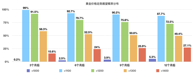 未来3个月,黄金价格持稳1200美元附近支撑的概率较高,约91.5%,但是持稳1300美元附近支撑的概率约58.3%,略高于50%。需要留意的是,8月初时根据同样的方法计算得出的金价持稳在1300美元以上的概率小幅高于60%,9月份的该概率的下降显示了市场逐渐转空的趋势。此外,2016年余下时间多头大幅反弹的可能性已经非常低,即高位突破1400美元阻力线的概率远低于50%,约15%。因此,未来一段时间,投资者需要密切跟踪金价,观察市场能否持稳1300美元附近支撑,一旦跌破那么市场或提前转空,而且跌幅或逐步扩大。