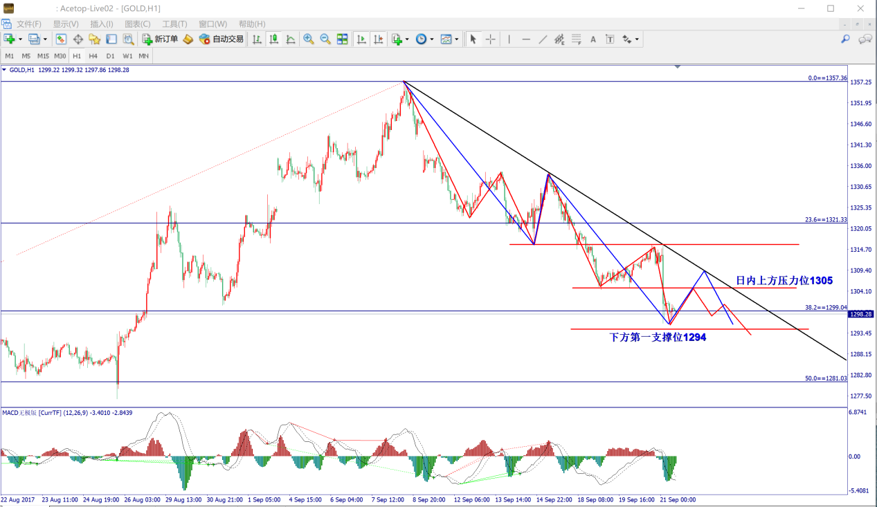 北京时间周四(9月21日)凌晨2时美联储宣布维持利率决定不变,但宣布将于10月开始缩表,并且预计今年还将加息一次。决议出炉之后,金融市场波动剧烈,黄金跌破1300大关,短线快速下挫,最低下探至1295.92美元/盎司,跌幅逾1%。美元先抑后扬,短线上涨逾100点。