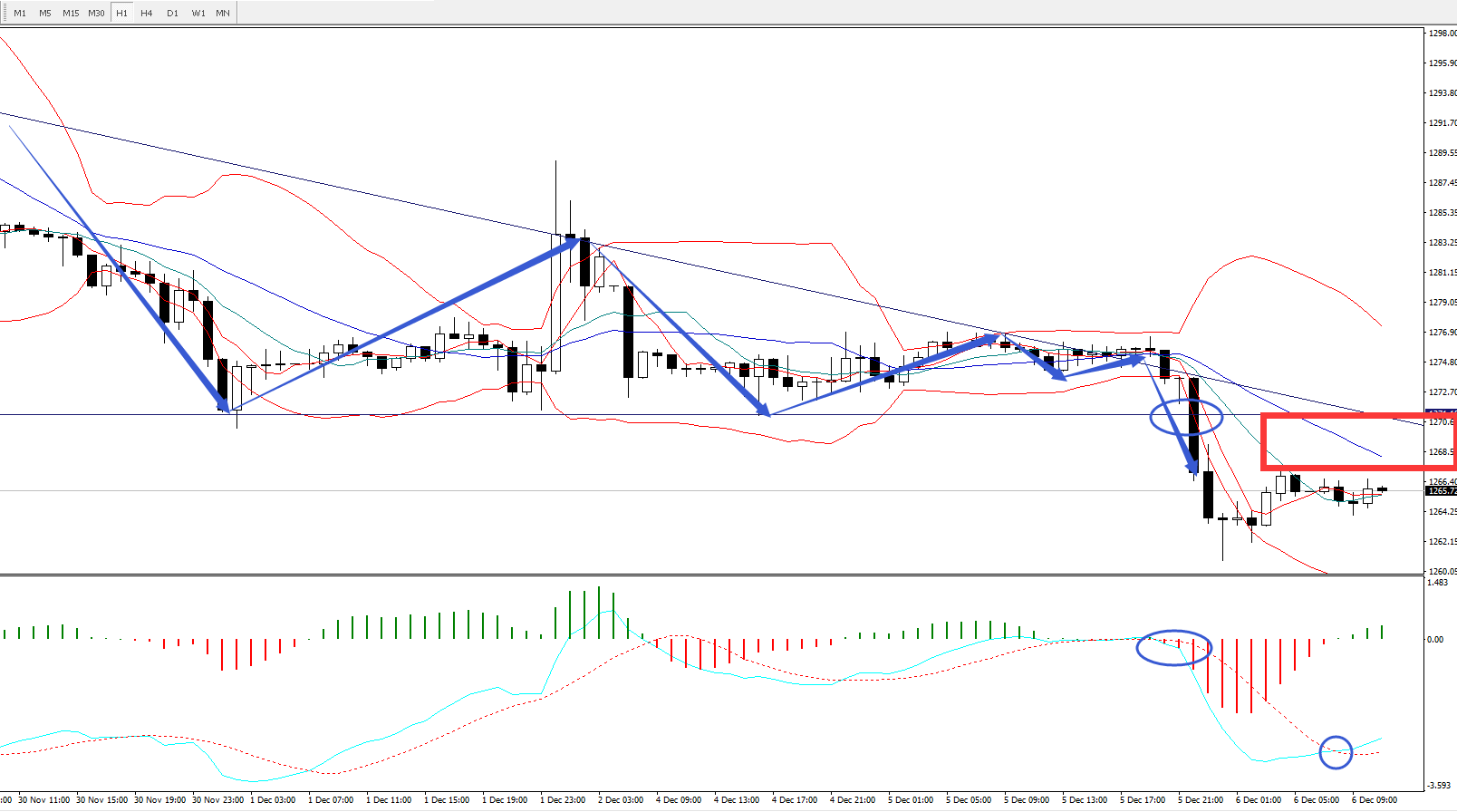 昨日黄金价格如预期顺利下破,空方大胜。最低触及1260.81美元。日内要重点关注晚间21:15公布的美国11月ADP就业人数,该数据是12月8日周五非农数据的一个前瞻性数据,黄金价格日内短线亚欧盘很大概率会偏谨慎走震荡,晚间数据前后行情波幅不会太小,建议投资者做好风险控制。稳健者日内建议规避风险,观望为主。