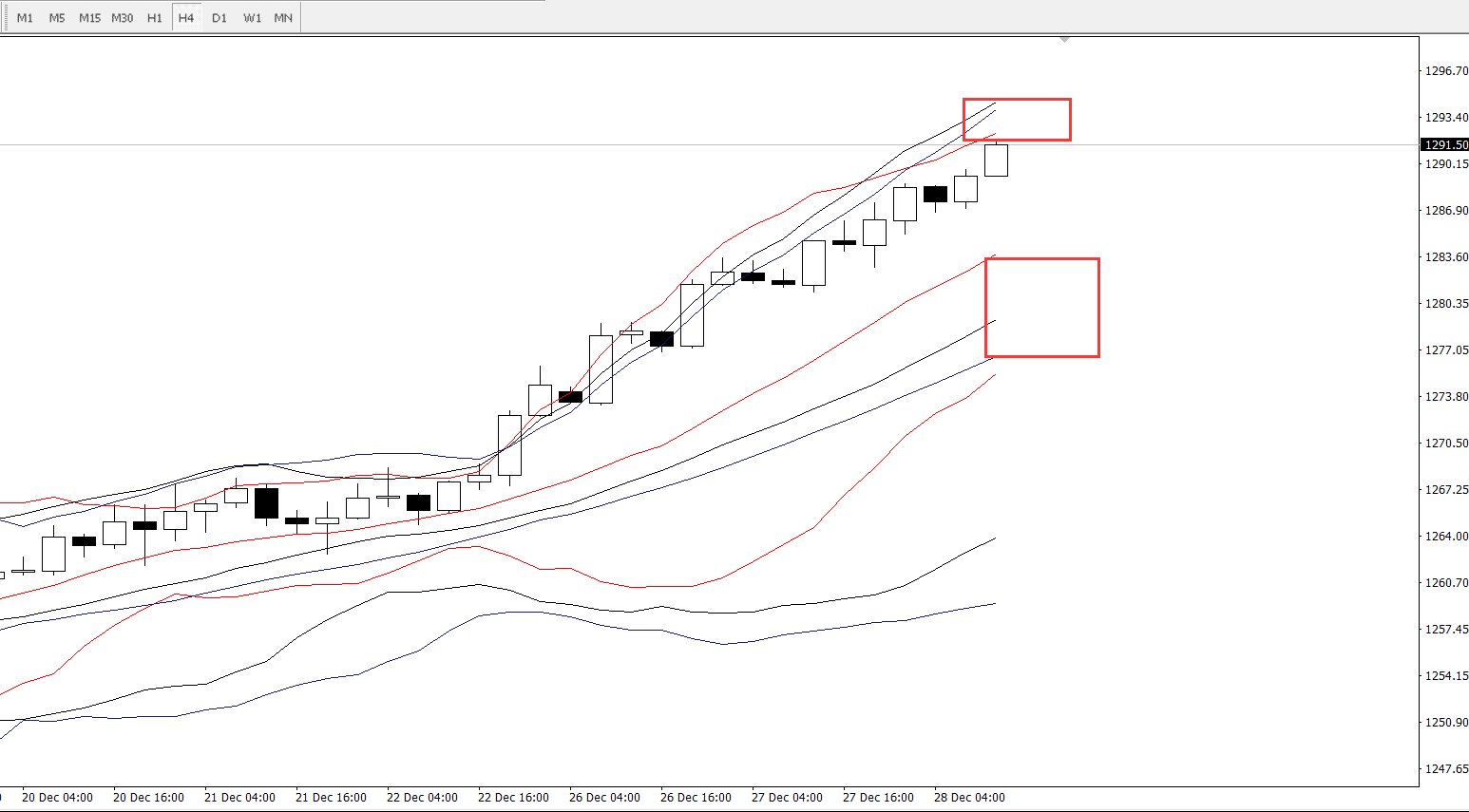 从4小时图来看,目前价格短线上仍保持强势上攻的态势,日内要重点关注上方1292-1295的压力区间,该区间是周期分别为14,21,26布林轨的上轨区间。下方支撑区间要关注各周期布林轨的中轨位置的支撑情况,即1277-1283区间。稳健者可等待价格成功回落至1283附近再选择低多进场。