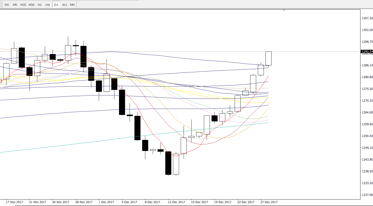 日线图均线系统,目前价格短线上整体偏强,但当前价格已经远离短周期的多根均线,若偏离空间越大,短线上可震荡的风险也会随之拉升。日内要重点关注下方132日均线与100日均线的支撑区间1285-1286。短线上还要重点关注下方5日均线1281一线的支撑。