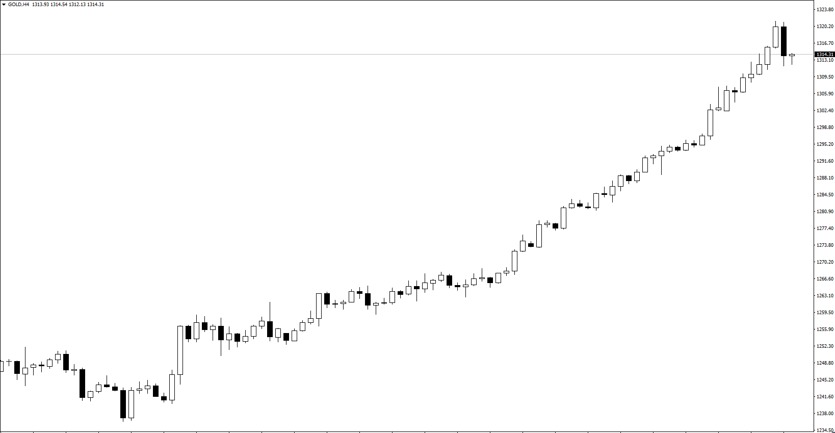 【黄金4小时图】上图是黄金4小时走势分析图。可以看出,黄金近期走出了一波强势大牛市行情。起点为前期下跌的低点1236美元附近,最高达到1321美元一线,涨幅高达85美元,赚钱效应火爆。这点从4小时走势形态可以明显看到,单边大涨,不断新高。那么之前评论中也一直在提到大多头行情,并也给出了做多策略。同时昨日评论中也给出了1307做多的策略,目标看至1320-1325。此时来看,短线已经大幅盈利。今日思路上,暂时保持看多不变。虽然4小时走势出现了短线急杀跌,但形态上还没有转折看空的迹象,因为亦可以再次收出跌幅,形成上涨新高。当前强势行情中,除非走出明显头部形成,才可转折看空。而此时,对于做多来说,是比较好的低位入场点,故今日思路暂保持看多做多不变,若有变化,再行提示。