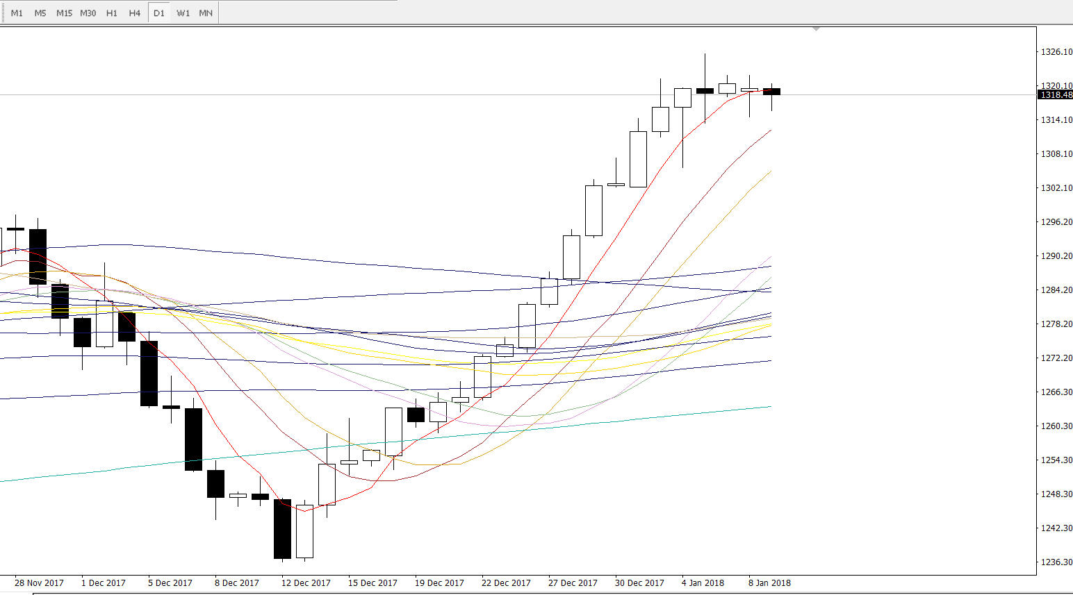 日线图,目前从K形态上来看,有筑顶迹象,短线上则要重点关注5日均线能否继续有效压制,若价格短线上破位后继续下行,那么下方要关注10日均线的支撑1312.3一线以及13日均线的强撑1305一线。