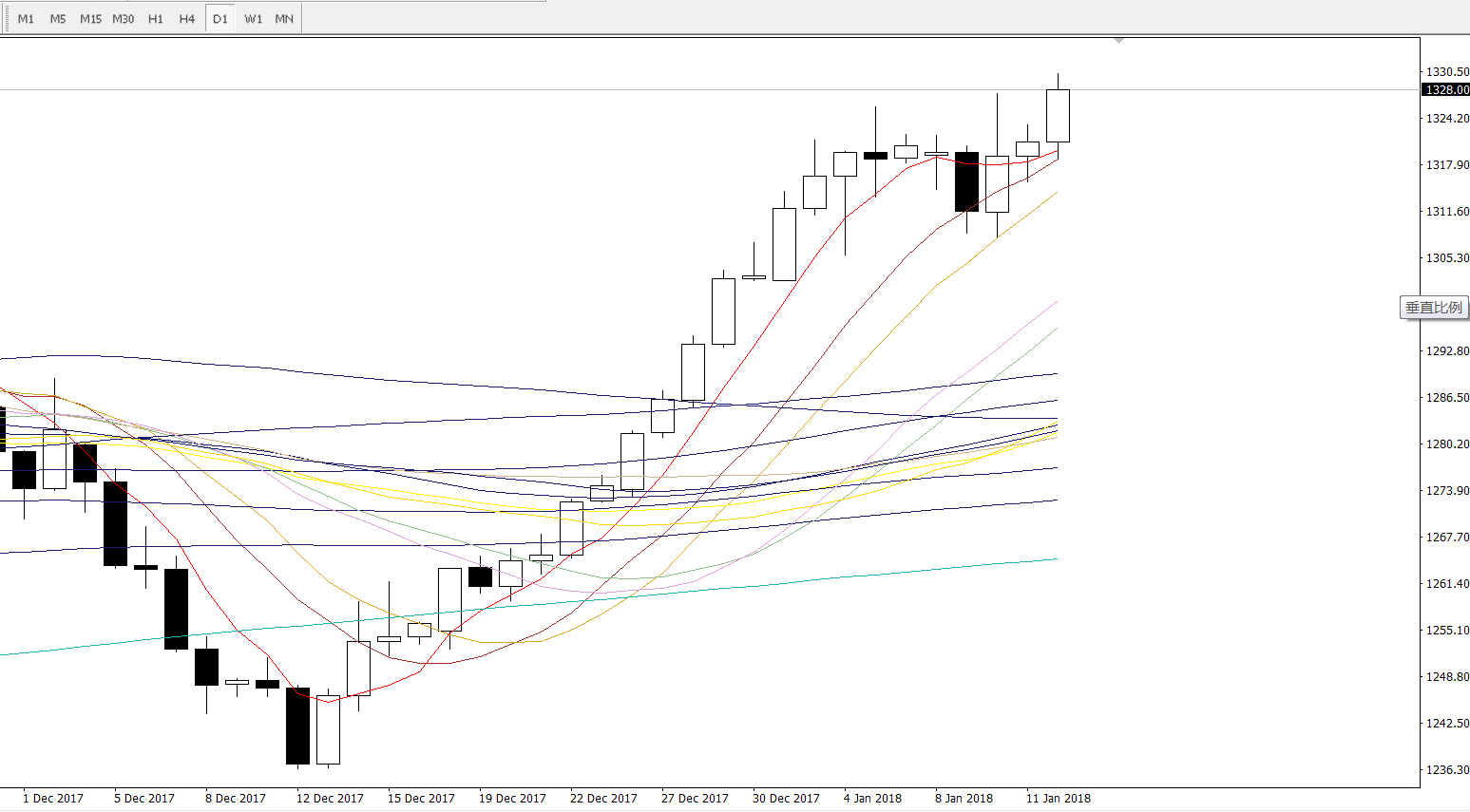 日线图,目前从K线形态上来看,前期筑小顶的动作已经宣告失败,且目前短线上前期高点1327.5已于亚盘被强力上破,均线系统上价格也已经成功站稳5日均线、10日均线上方。短线上整体偏多,下方需重点关注5日均线、10日均线的支撑区间1318-1320,该区间若支撑失败,下方则要重点关注13日均线1314一线。