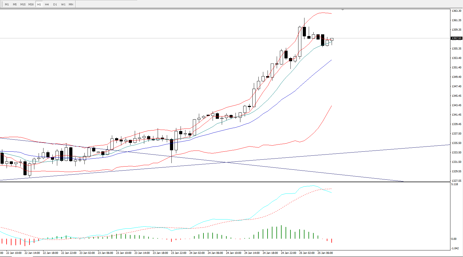 关键压力位可参考:1365,1370。