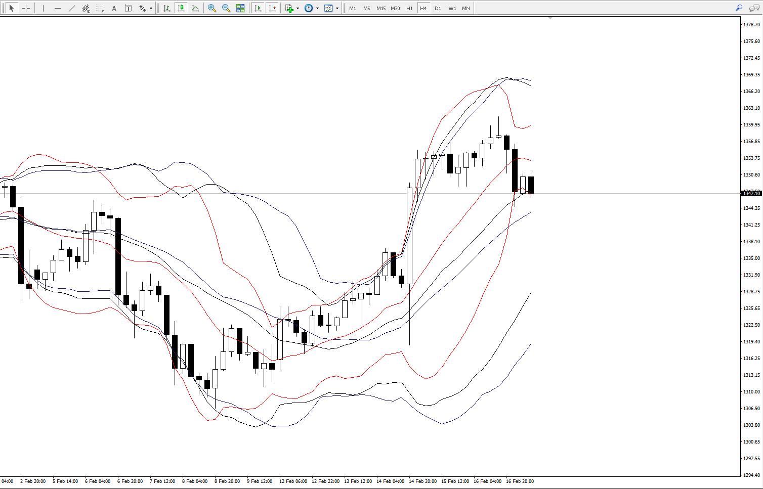4小时图,短线上当前价格受撑于周期为14布林轨的下轨以及周期为21布林轨的中轨的交叉点1348附近,该位置若能形成有效支撑,欧盘时段多头或将继续发力,短线上除了要重点关注1348一线的支撑之外还要重点关注下方周期26布林轨中轨1343一线的重要支撑。若1343一线仍被强力下破,那下方的下行空间或将被进一步打开。所以稳健者日内短线上可考虑于1343附近轻仓做多,止损1340下方,目标1345-1348-1353。