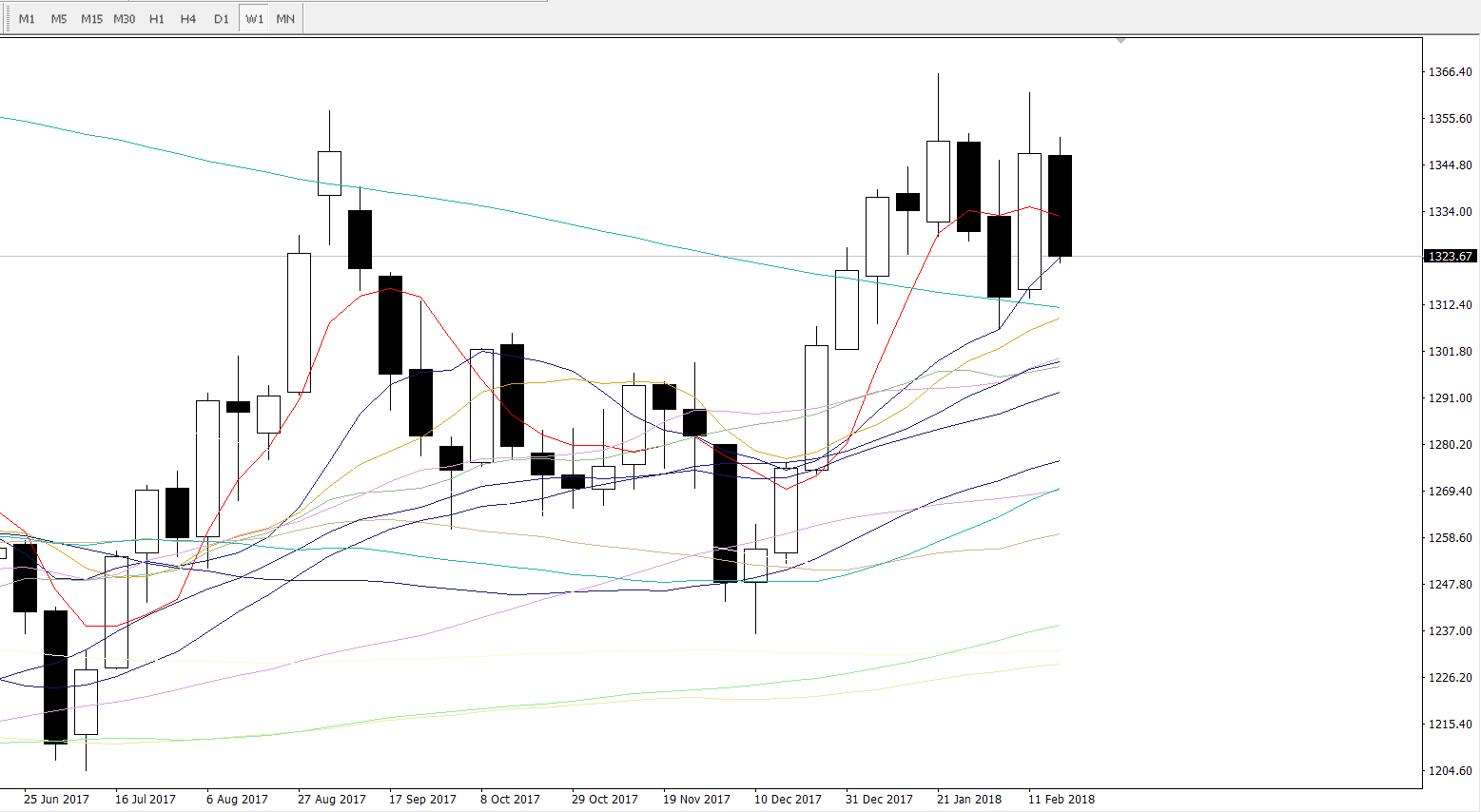 均线系统上,日线级别要重点关注55日均线1323与60日均线1317.5的支撑,而周线级别要重点关注10周均线1323一线附近的支撑与5周均线1333一线的压力。