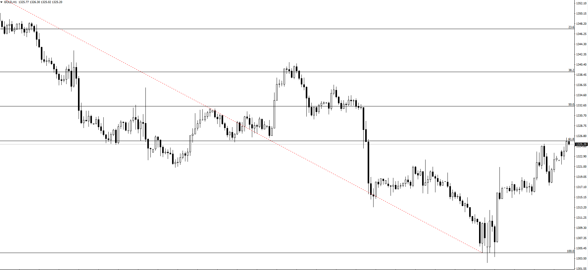 【黄金小时图】上图是黄金1小时走势分析图。可以看到,黄金在上周四创出新低点1302美元之后,开始企稳反弹,进入上涨走势。目前在小时级别图中,短期黄金已经由之前下跌走势转为上涨,并且有小阶段底迹象,这一点在日线当中也可以看出。那么近期操作上就需要改变思路,关注后续或本周行情是否会出现上涨为主走势,建议看多为主。而今日走势上,黄金短线经过上周四周五的连续上行,此时已经来到黄金分割0.382压力位,该位置压力较为明显,稳健操作可不追多。同时,需要关注上方1332附近压力,可在该压力位做空。