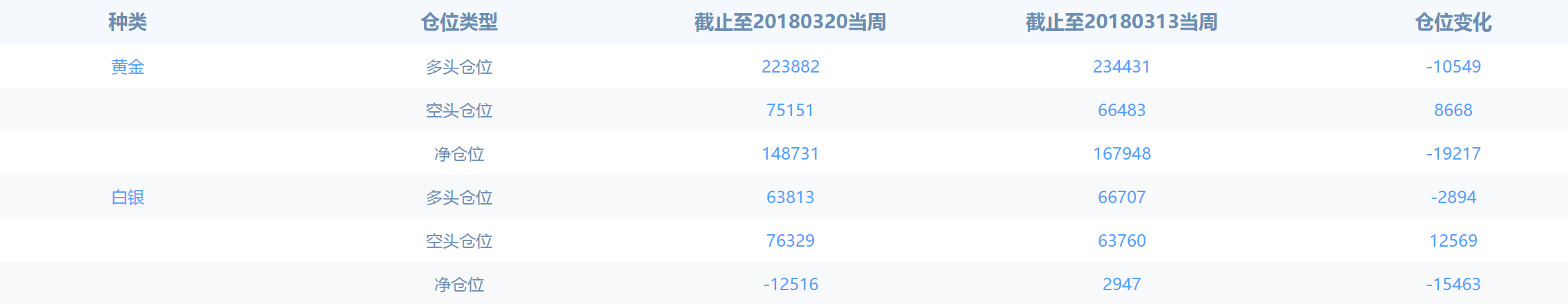 持仓方面,CFTC数据显示,截至3月20日当周,投机客将所持的黄金净多头仓位削减19217手至148731手;白银投机性净仓位减少15463手,目前净空头达到12516手。