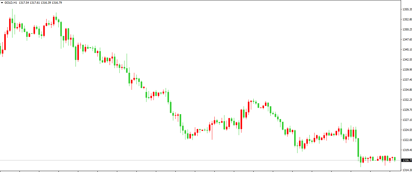 昨日市场受到美元指数的再次大涨承压,黄金亚欧盘反弹之后在美盘继续下跌创新低至1315美元附近,延续空头趋势,日内跌幅高达12美元。