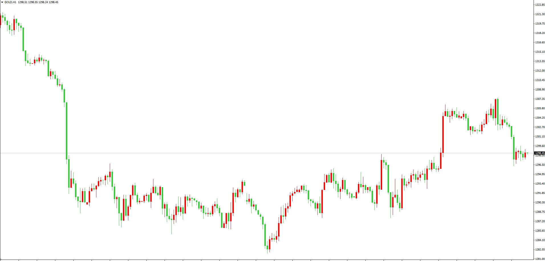 上周五晚间市场受到美元指数的强势拉升,黄金由涨转跌,日内冲高回落,从最高1307.5美元一线位置下行至1300美元附近,全天维持震荡向下走势波动。