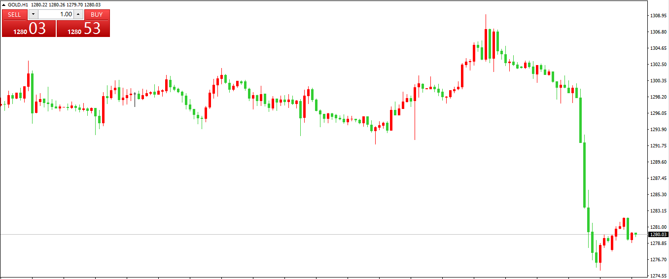 上周五晚间黄金破位暴跌,最高从1302美元附近单边下行至最低1275一线位置,日内跌幅超25美元,日线收大阴线。