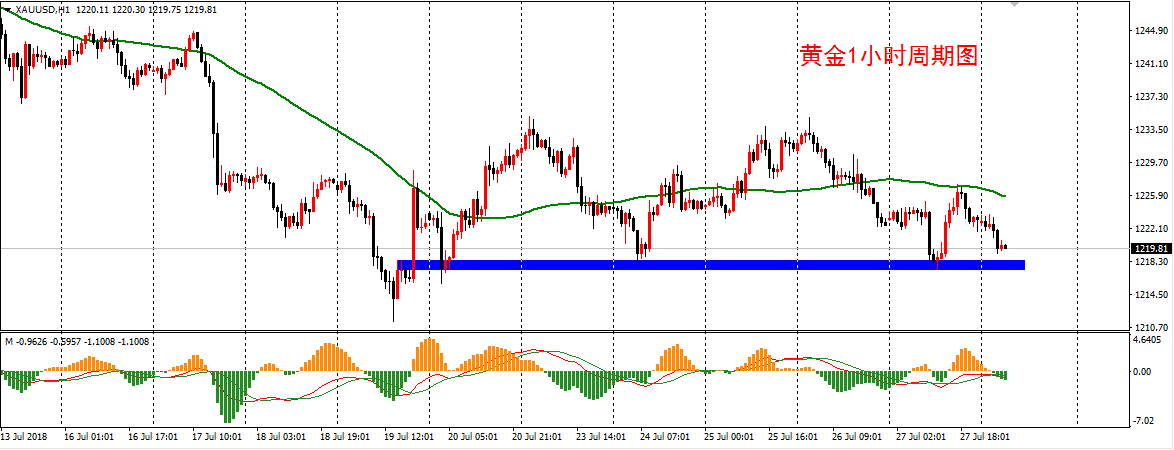 现货黄金近几日走势低迷,上周五在下挫至低位1216.93美元之后有所反弹,整体走势偏弱。