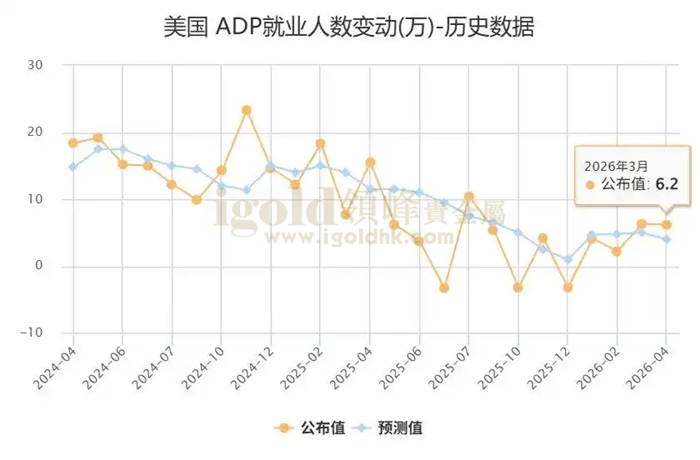 ADP数据显示,美国3月私营部门新增就业岗位6.2万个,显著高于经济学家预期的4万个。同时,2月的新增就业数据被上修至6.6万个,创下自2025年7月以来的最佳表现,显示出就业市场的韧性。